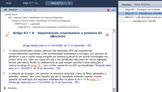 opção, a lista de "Favoritos/Notas Pessoais", será